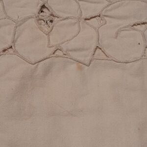 2 pc bundle ecru linen runner with stitched design with ecru crocheted edging & small mat with lace flower on corner. Runner is 51" X 15" & mat is 16" square. Both prowned and in good condition. (Runner has a couple spots in that I did not have time to get out.) Non smoking home. Beautiful pieces/