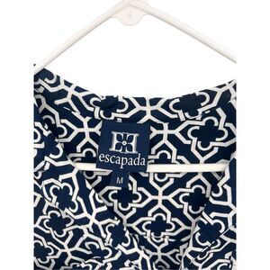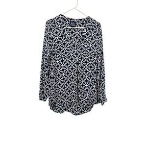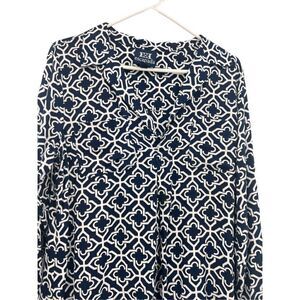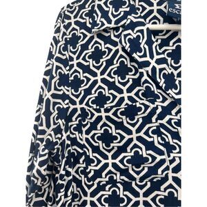 Escapeda long sleeve blue and white geometrical pattern blouse size medium