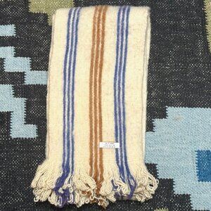 Ecuadorian 100% Wool Fringed Striped Scarf, Cream with Blue/Brown Stripes