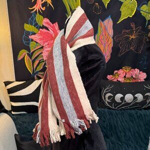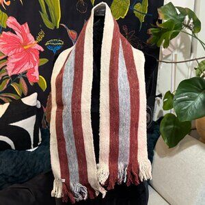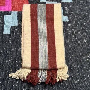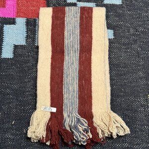 Gorgeous artisanal scarf will add flair to what-ever it is paired. The beauty is in its simplicity with a laid-back, bohemian vibe. Crafted by talented Ecuadorian artisans. This scarf combines the richness of wool with a stripe pattern offering warmth and hippie eclectic flair. Ideal for a cold winter day.