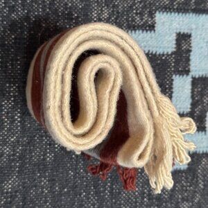 Ecuadorian 100% Wool Fringed Striped Scarf, Cream with Brown/Blue Stripes