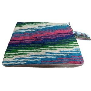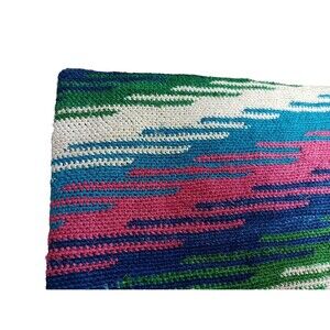 Ecuadorian Artesans Handmade Womens Straw Woven Bag Rainbow Striped Bag 10inx9in