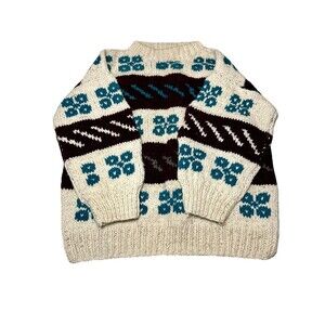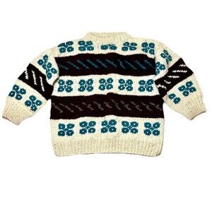 Ecuadorian Hand Made Wool Sweater Fair Isle Crew Neck Multicolor Unisex Chunky Knit