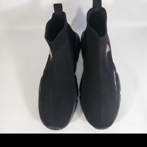 Ed Hardy Ladies Size 8.5 Sock Sneakers Black Ankle Boots Tiger is a wonderful and stylish addition to your wardrobe. These socks boots are designed with a tiger-themed pattern that will stand out in style. The boots come with a fabric upper material and feature a slip-on closure, making it easy to put them on and take them off. The boot also has a flat heel of under 1 inch, which provides the best comfort throughout the day. This boot is perfect for any woman looking for a comfortable and stylish shoe to wear anytime.