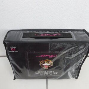 Ed Hardy 6-Piece Queen Satin Black Sheet Set
