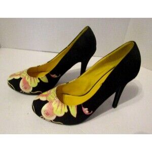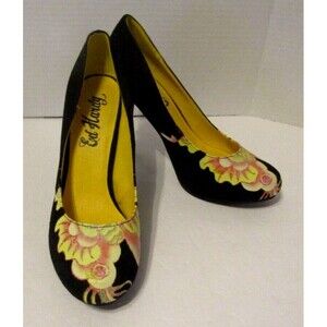 Description: Ed Hardy Amma Heels Floral Pinup Stilettos Pumps Womens Size 8