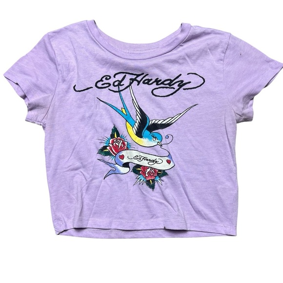 Ed Hardy Baby Tee Prurple Traditional Graphic Y2K Size Medium