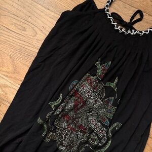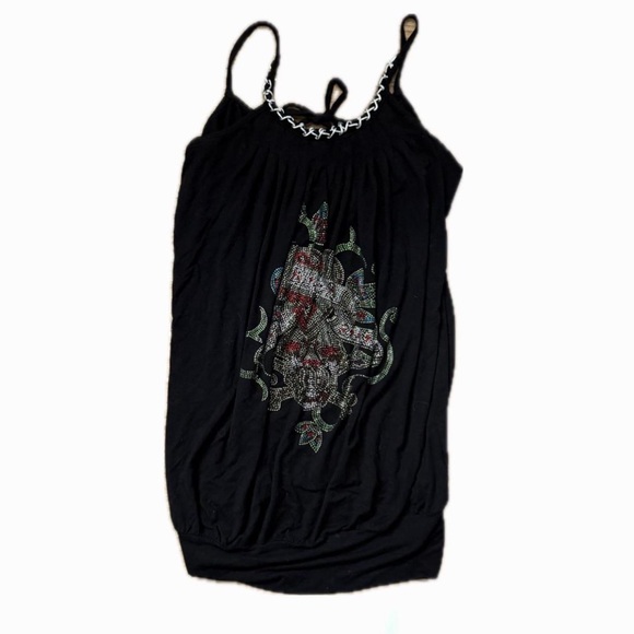 Ed Hardy Black Rhinestone + Chain Tank Top