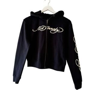 Ed Hardy Black Snake Skull Logo Cropped Zip Up Hoodie Sweatshirt SZ S #2290