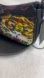 Ed Hardy bag with striking tiger pattern. Features bold black and cream colors.
