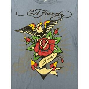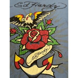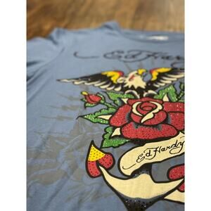 Ed Hardy Blue T-Shirt, Eagle, Heart,Bling Rose, Anchor