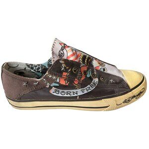 Other features: Ed Hardy, Born Free, Brown color, Canvas Sneakers, Adult Unisex, Women's, Size 10
