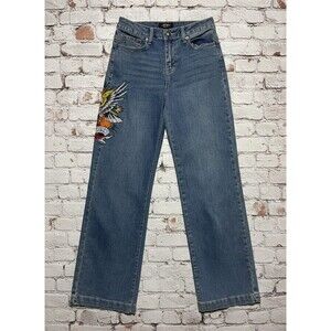 ED HARDY BRAVE HEARTS STAY TRUE EMBROIDERED EAGLE JEANS - SIZE 26 Y2K VINTAGE DENIM