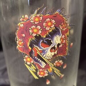 Ed Hardy By Christian Audigier Skull/ Flowers And Fire Drinking Glass Tall
