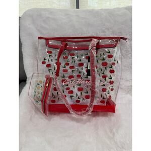 🍒 Ed Hardy Cherry Print Clear Tote Bag with Pouch – Red Cherries