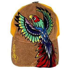 Ed Hardy Christian Audigier Baseball Trucker Hat Cap Parrot Yellow Vintage