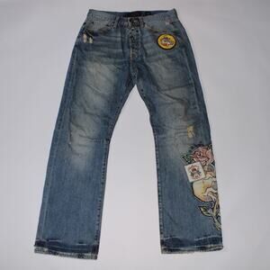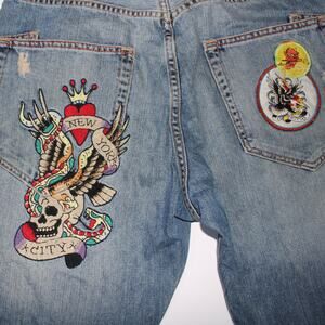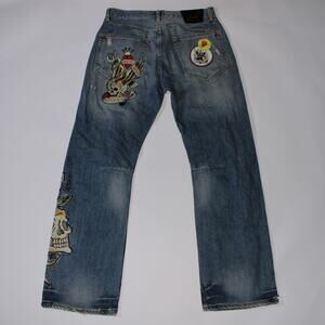 Ed Hardy Christian Audigier Embroidered 34 X 34 Jeans
