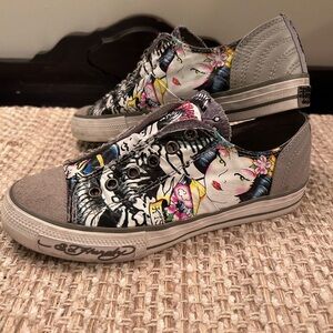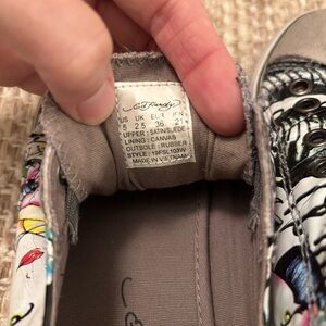 Ed Hardy Colorful Tattoo Slip On Sneakers Women Sz 5 Shoes Low Tops Y2K Grunge