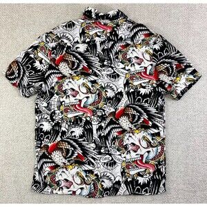 Ed Hardy "Death Before Dishonor" Button Down Shirt Graphic Print Men's Small Skulls
