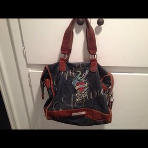 Ed Hardy Designer Handbag fun for school/shopping! Vintage, Has been used but taken care of normal wear sold as is. multi inside pockets. Great fun bag.