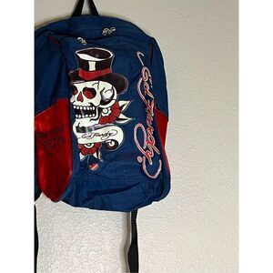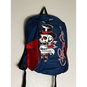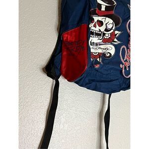 Ed Hardy Designs Rare Backpack Red Blue Skull Top hat Y2k 14x12x6