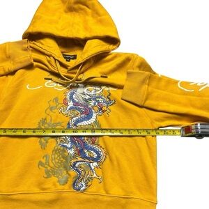 Ed Hardy Dragon Tattoo Pullover Gold Hoodie Size Medium Signature Logo