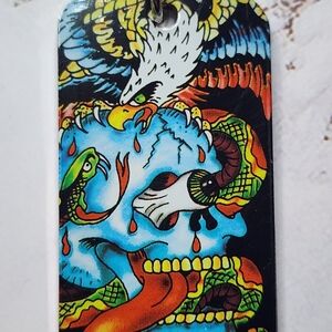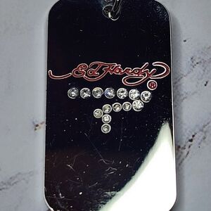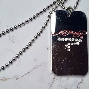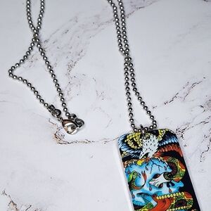 Ed Hardy Eagle & Skull Rhinestone Dog Tag Necklace