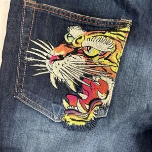 Ed Hardy Embroidered Tigers Baggy Skater Jean Shorts Lot 2008 Men’s Size 34 Y2K