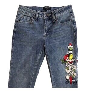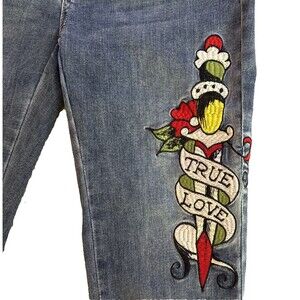 Ed Hardy Embroidered True Love Flare Jeans Womens 26 Love Eternal Spellout NEW