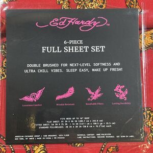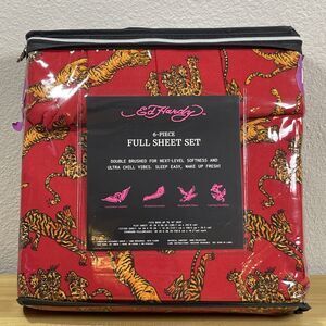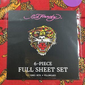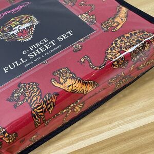 Ed Hardy FULL Sheet Set 6-Piece Bold Dark Red with Tigers Print NEW.