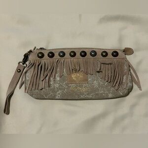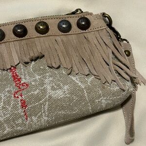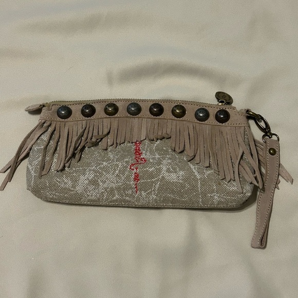 Ed Hardy Ferris Wristlet with Suede Fringe Clutch Bag