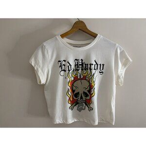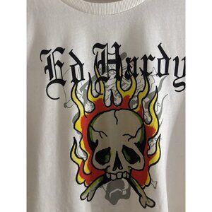Ed Hardy Flame Skull Cropped Baby T-Shirt white Size large