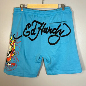 Ed Hardy Flame Skull Fleece Lined Shorts Size Large NWT