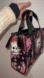 This stylish black tote bag features a vibrant floral and skull design, perfect for adding an edgy touch to any outfit. The bold colors and unique pattern make it a standout accessory.