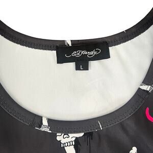 Ed Hardy Gray White Skull Knife Logo Cropped Tank Top size L NEW Tags Racerback
