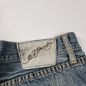 Ed Hardy denim pieces by Christian Audigier are iconic Y2K streetwear staples. This pair’s bold tiger embroidery and distressed finish make it highly collectible and perfect for fans of vintage streetwear, Y2K fashion, or statement denim.