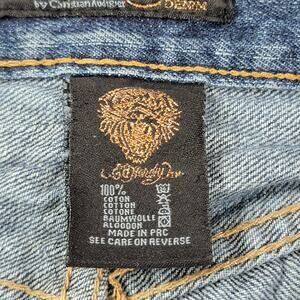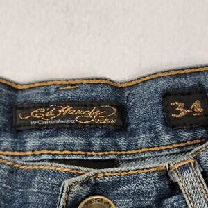 Ed Hardy Jeans Mens 34x34 Blue Denim Straight Leg Tiger Embroidery Distressed
