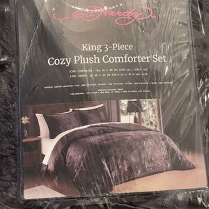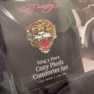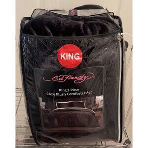 Ed Hardy King 3 Piece Cozy Plush Comforter Set Black, 1 Comforter / 2 Pillow Shams NEW.