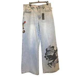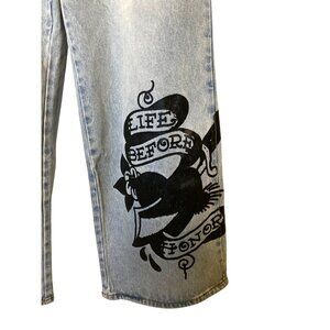 Ed Hardy Light Wash Denim Jeans With "Life Before Honor" Tattoo-Inspired Designs