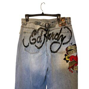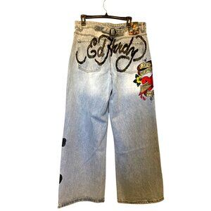 Crafted with intricate "Life Before Honor" tattoo-inspired artwork, these Ed Hardy jeans combine contemporary fashion with bold artistic expression. Durable and stylish. These jeans are hot. Snag them while they last! I have two pairs left, size M and size XL. The price is per pair.