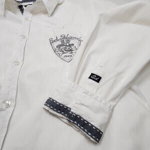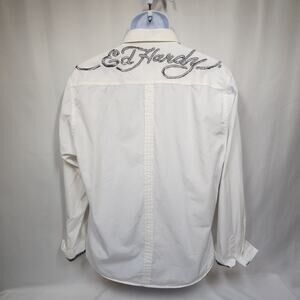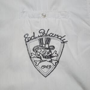 Ed Hardy Long Sleeve White Button-Up Large Skull On Pocket