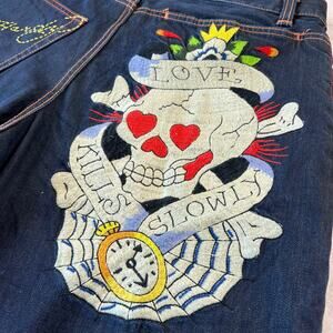 Ed Hardy Love Kills Slowly Embroidered Skull Jean Shorts men’s size 36 Y2K