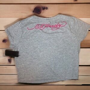 Ed Hardy Love Kills Slowly Gray Crop T-shirt Top Large