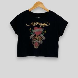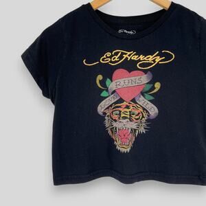 Ed Hardy Love Runs Wild Tiger Graphic Cropped Tee