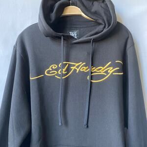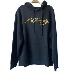 NWT Ed Hardy Men's Y2K Spell Out Logo Black Hoodie Sweatshirt