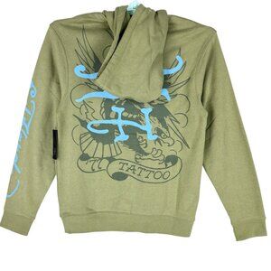 Ed Hardy Men's Olive Green Panther Tattoo Hoodie Sweatshirt Size Small NWT