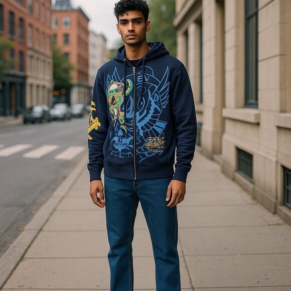 Elevate your style with this Ed Hardy Midnight Blue Hoodie, featuring a striking panther and bulldog design. Perfect for casual outings, this hoodie offers comfort and a bold fashion statement.