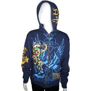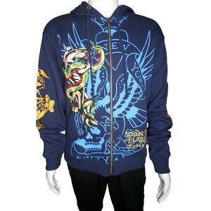 Ed Hardy Men's Panther Bulldog Midnight Blue Hoodie Sizes L & XL