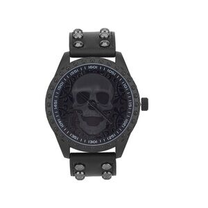 Ed Hardy Men’s Skull Print Dial Matte Black Studded Strap Analog Watch …
