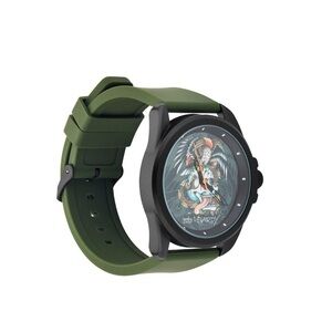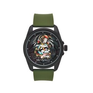 Here is a Ed Hardy men’s skull print dial Matte Olive silicone strap analog watch new